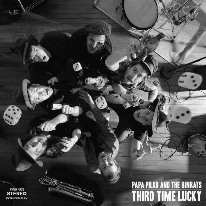 Sydney septet Papa Pilko And The Binrats describe their music as wild blues and slick swingin’ country rock ‘n’ roll with horns. Add to that a uniquely Australian approach to sleazy, boozy song-writing and a charismatic frontman not afraid to make a fool of himself and you have a band that tick all the right boxes for entertainment value alone. This four-track EP is the band’s third in barely eighteen months, and sees the hard-drinkin’, bar-room brawlin’ bunch get loose and lewd over the course of a short fourteen minutes. The baritone sax gives the start of opener ‘Poor Boy’ a beat-down, depression-era feel before the full horn section kicks in and the song takes off in swinging fashion. Singer and head Binrat Cyrus ‘Papa’ Pilko must have been hitting the sarsaparilla pretty hard lately, as he’s sounding much more throatily gruff than on the band’s two previous efforts, but it all adds to the downright dirty tone of the record. “I come home at 10am and I open up the door. We start out in the bedroom and then down on the bathroom floor,” he cheekily sings on ‘Woman In Black’, and you can tell he probably means it. The only bad point about this EP is that it doesn’t quite do the band justice; you have to catch them live to fully appreciate their raucously loose act and the spectacle of Pilko acting like an amiable madman. That being said, these songs swing and roll with infectious vigour. (Independent)