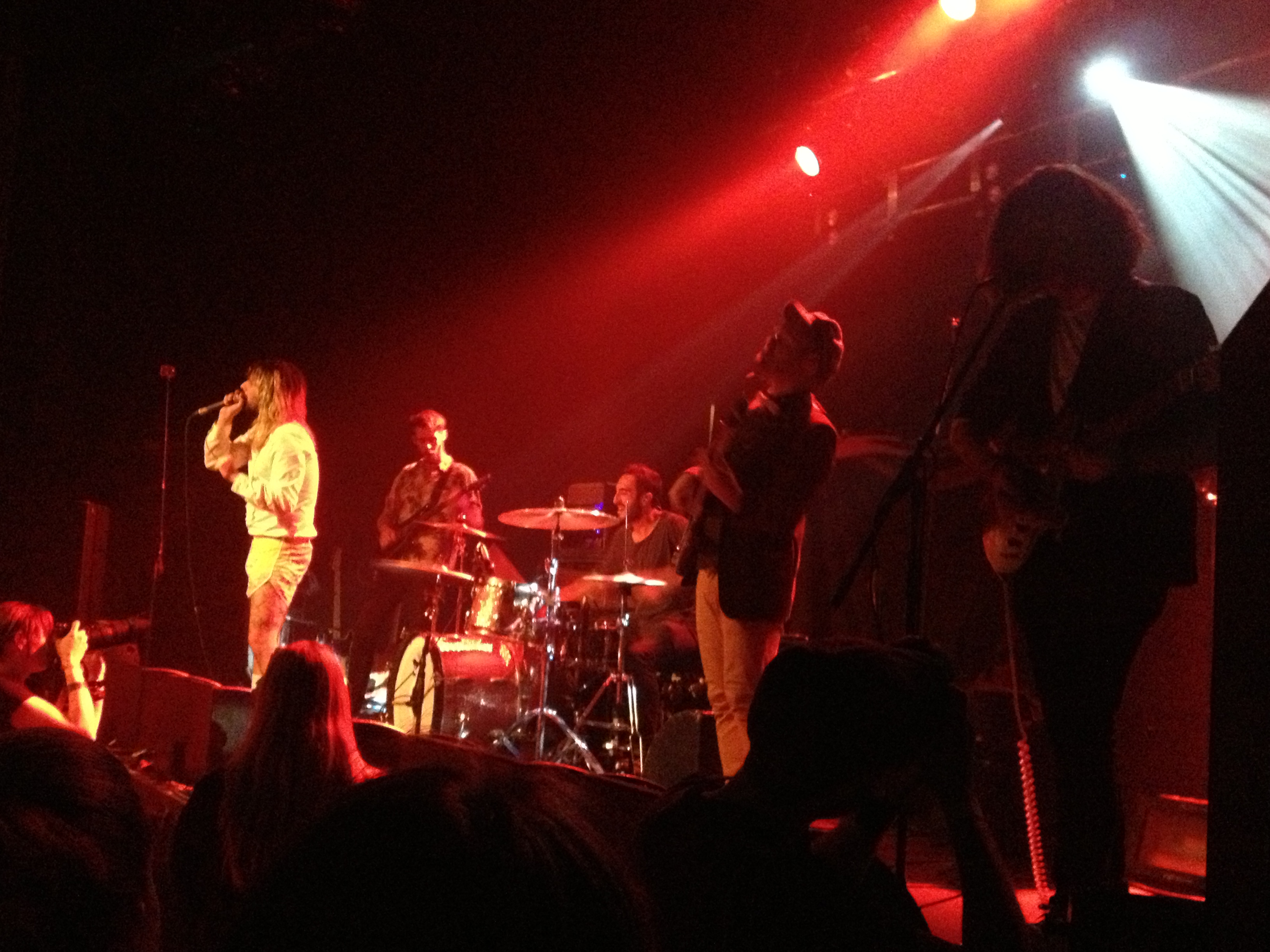 The first band to take several years off my hearing lifetime tonight is Sleep Parade; the Melburnians putting in a solid set of searing guitar lines and apocalyptic drums, despite being a bit cramped to the front of the stage so as to avoid the range of gear laid out for the head-liners. A large and enthusiastic crowd has already made The Hi-Fi close to uncomfortably full, and give the alt-rockers a rapturous response, especially after singer-guitarist Leigh Davies does the old playing-the-geetar-with-the-teeth trick. Nice.