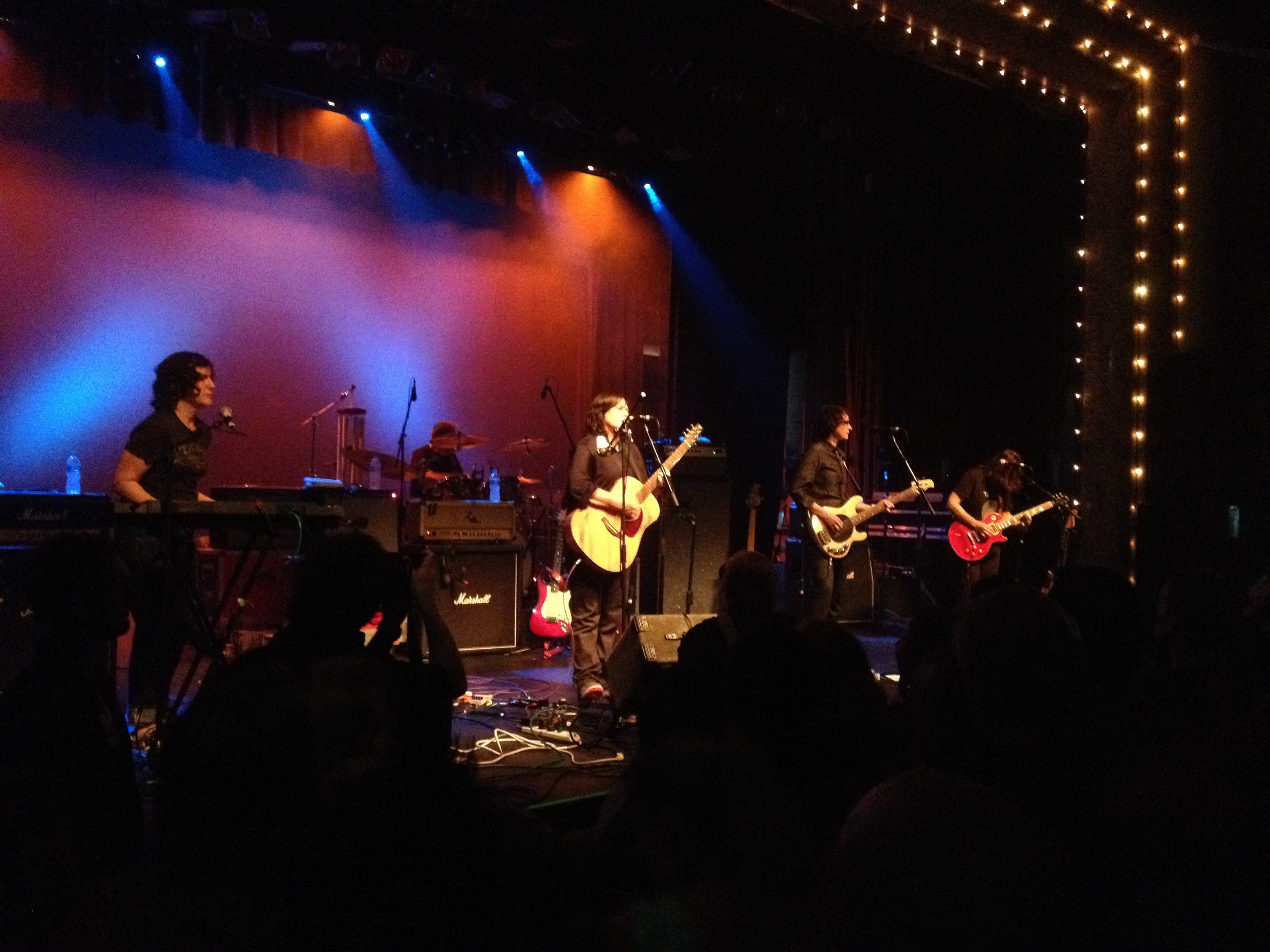 The opening trio of ‘Redford (For Yia-Yia and Pappou)’, ‘Death With Dignity’ and ‘Should Have Known Better’ have the audience in raptures as a searingly-vivid light show evokes the feeling of being in a particularly garish (and particularly loud) church or cult meeting. The five-piece band go about their task with a near-telepathic sense of communication, as the mood of a piece can lift or drop depending on a look or the slightest gesture.